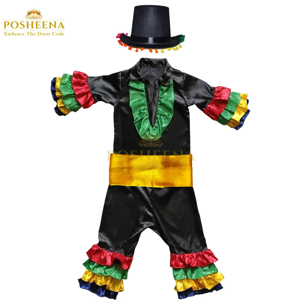 This complete ensemble is designed to be eye-catching and comfortable, allowing for unrestricted movement whether your child is dancing, performing, or simply playing. The costume typically includes the brightly detailed shirt, trousers, and the festive top hat.