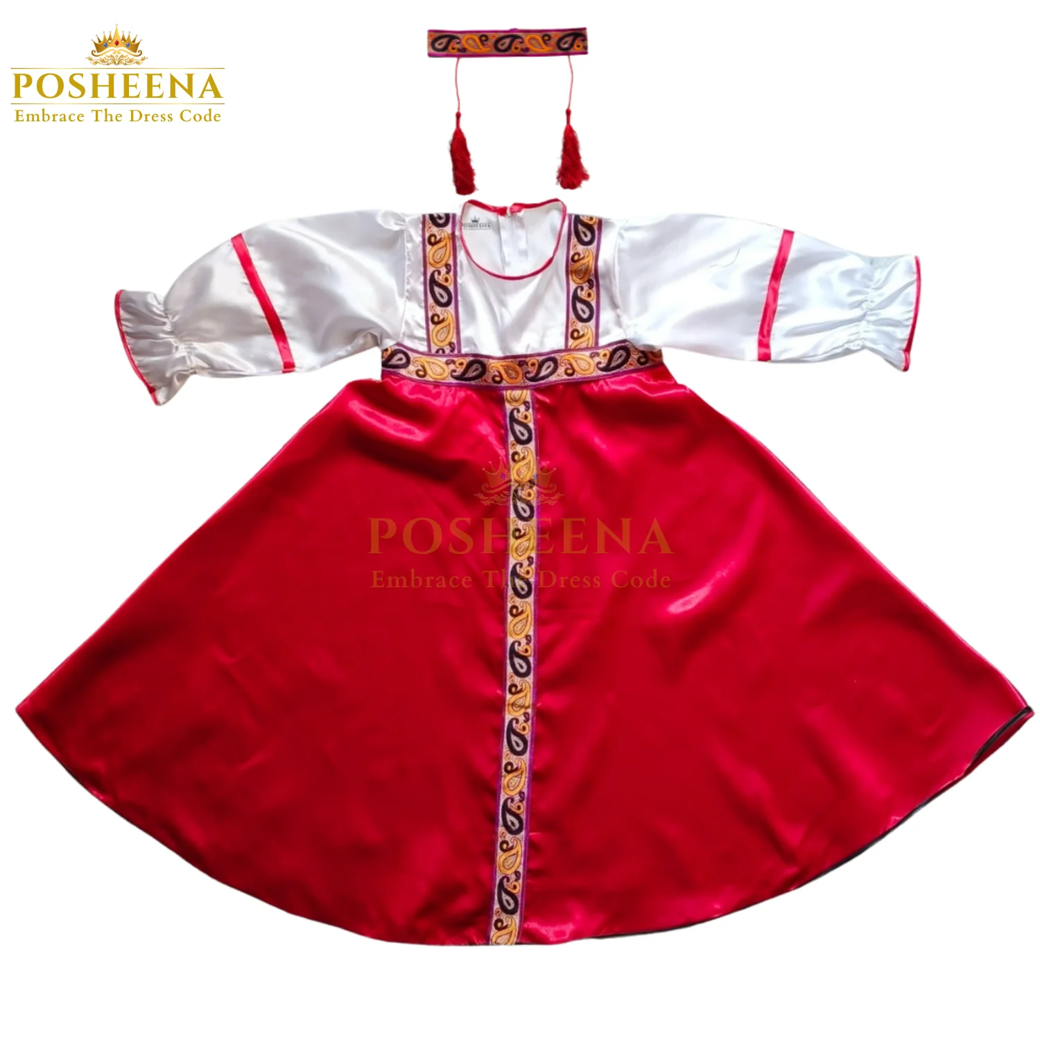 Elegant and comfortable Russian Cultural Dress for Kids with matching headband. Perfect for cultural days, heritage events, and school performances. Available for worldwide delivery!